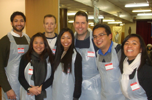 Volunteers, including Chris Metzger (3rd from right), are ready to serve meals!