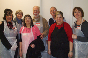 Volunteers are prepping meals at our "Dinner for the Needy"