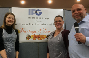In early November, volunteers from IPG Corporate hosted a pre-Thanksgiving lunch with St. Francis Food Pantries and Shelters at the Encore Senior Center at St. Malachy’s Church.