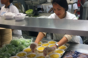 IPG volunteers greet the clientele, serve them lunch – a balanced and nutritional meal is always part of the menu – help the elderly return to their seats with the food, even help them with their jackets. Part of the food preparation includes the 800+ meals that are delivered daily to clients that are homebound.