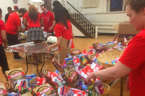 In Mid April, as part of their Annual Bag Hunger campaign, our friends from Macy's spent an afternoon packing 200 "Easter Dinner Baskets." These baskets were chock full of ingredients to make a delicious dinner, including: a canned ham, sweet potatoes, green beans, corn, mashed potatoes and more!