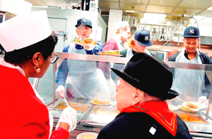 Gleyber Torres, Clint Frazier and Starlin Castro of the NYY serving meals.